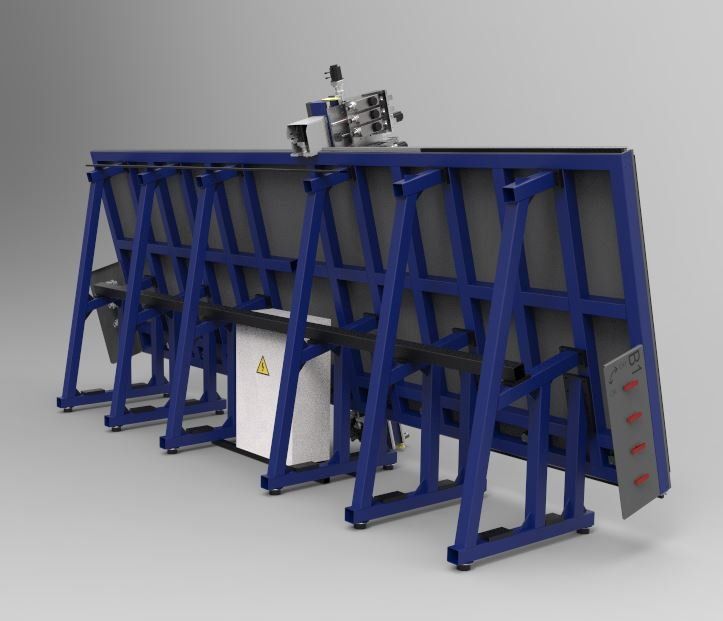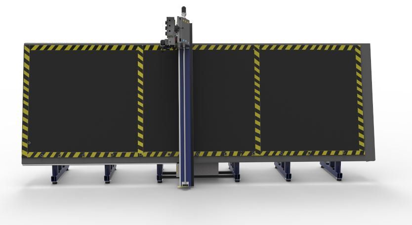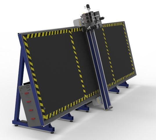 KSD PRO II-V 2055 3H + C, is a milling machine of numerical control CNC, professional, of high performance, of three axes with vertical bench (table of work) and mobile bridge with displacement on all the useful surface of work, where the three milling engines and the cutting saw are housed in a single head. Professional vacuum system with two suction turbines and eight differentiated and independent work surfaces. Pneumatic positioning system with retractable stops on the work surface and retention of anti-fall material on the lower part and individual chip extraction system for each pre-installed milling engine.